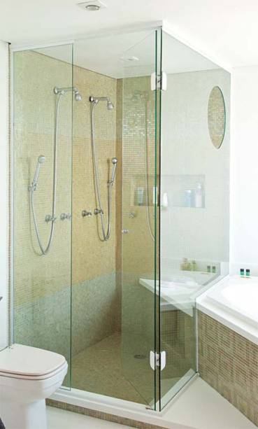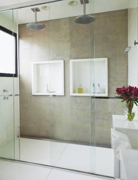 Buscando conforto e maior espaço, alguns profissionais e moradores preferem instalar chuveiros duplos nos banheiros onde há metragem disponível. Confira 10 ambientes que combinam os chuveiros duplos com cubas, banheiras, e diferentes layouts e revestimentos.