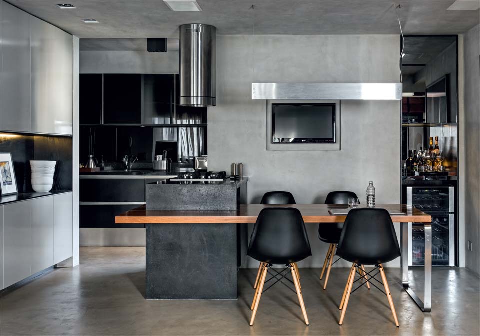 61/100 Para delimitar a cozinha e conferir unidade ao conjunto, o piso e as paredes receberam Tecnocimento, da NS Brazil. Projeto das arquitetas Maria Cristina Martini e Suzana Barboza. (Divulgação/Casa.com.br)