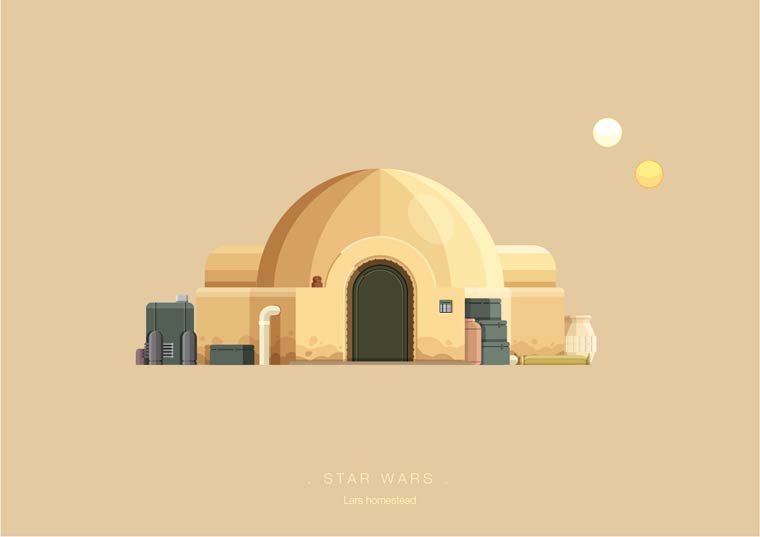 O ilustrador brasileiro Fred Birchal criou uma série de desenhos que homenageiam construções icônicas de filmes e séries. Confira algumas abaixo e outras no site: <strong>www.fredbirchal.com</strong>