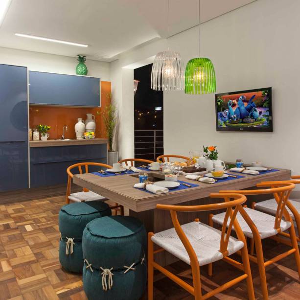 Apê de 81 m² tem roupeiro, cristaleira na cozinha e casinha de gato no banheiro