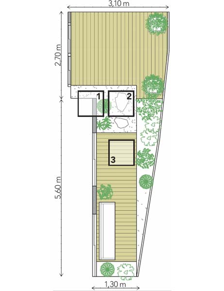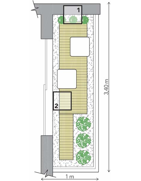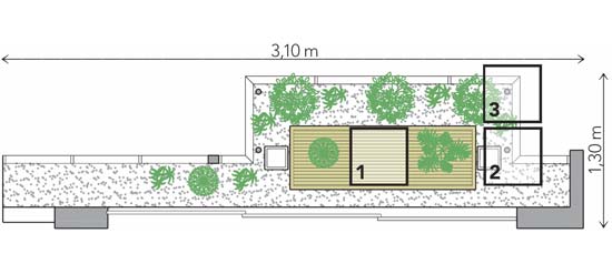 Um dia foi suficiente para a montagem deste espaço descontraído em São Paulo. É um pedaço de verde na selva de pedra, diz o arquiteto Neto Porpino. A metragem reduzida foi driblada com o jardim em vasos, que traz cores e hortaliças. Fixados com bucha, os suportes feitos sob medida pela Ferro em Estilo (que promete entrega em três dias) sustentam os cachepôs da Rizzo Embalagens. O piso original recebeu um deck de pínus autoclavado (Madeireira Castor) ladeado por pedriscos. Uma manta para drenagem (FG Import), disposta apenas sobre o ralo, assegura que as pedras não o invadam e acabem entupindo a instalação.
