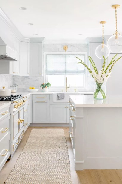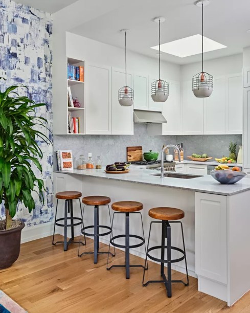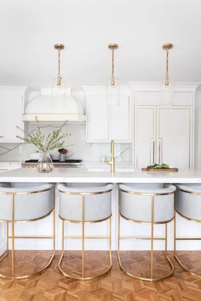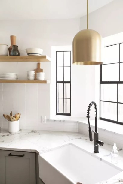 Isso vai além de adicionar alguns objetos decorativos às suas bancadas. Você pode substituir o seu backsplash por uma parede de ladrilho de cobre cintilante ou torná-lo uma obra-prima com a ajuda de um fogão azul ou bancada de mármore. E estas são apenas ideias iniciais de como você pode criar dentro de quatro paredes brancas – ou sem paredes, se você curte o conceito aberto!