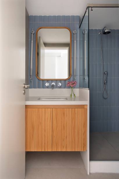 Ao escolher o material, dê prioridade para aqueles que seguem o mesmo estilo que o da casa. Uma outra dica é optar por portas de correr, para otimizar o espaço e por materiais transparentes ou reflexivos, como espelhos, que dão sensação de amplitude.
