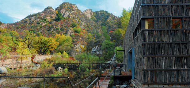 A Biblioteca de Liyuan fica a duas horas de Pequim e foi construída ao lado das montanhas, com uma arquitetura que se mistura à natureza