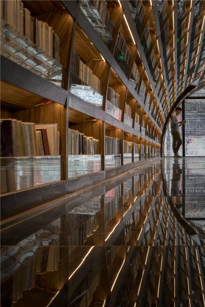 Biblioteca ganha piso preto refletor e parece flutuar na China