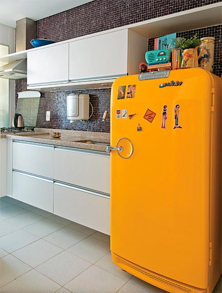 4. Pense no equilíbrio. “Para começar, ao invés de escolher duas cores completamente diferentes (amarelo e azul), varie a tonalidade em uma única cor (amarelo claro e amarelo escuro). Pinte os armários inferiores na tonalidade mais escura e, os superiores, na mais clara. Se você tem cores distintas em mente, pense no brilho e na luminosidade. Cores muito fortes – um laranja vibrante – demandam mais energia visual e precisam ser equilibradas com um tom mais neutro”, observa Kelly.