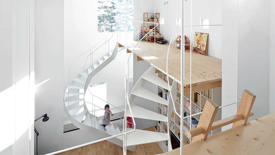 Conjunto de escadas interliga os meios-níveis de refúgio japonês