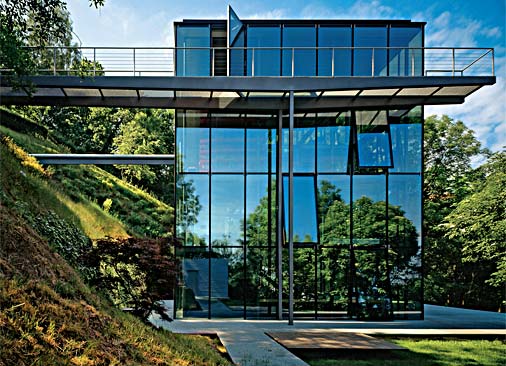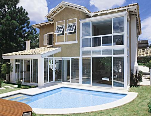 Fachadas de vidro, além de lindas, dão a sensação de que o entorno faz parte da casa.