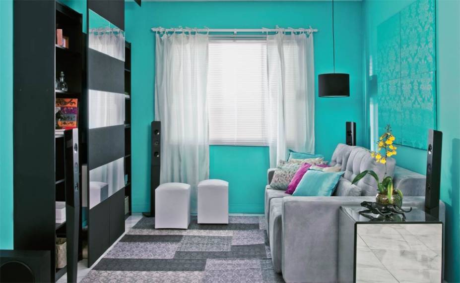 Quem não gostaria de dispor de um home theater bem equipado para os momentos de lazer e de um belo estar para receber os amigos? Ciente de que as medidas reduzidas são, em geral, o maior impedimento para a realização desse sonho, MINHA CASA pediu a consultoria da arquiteta paulista Brunete Fraccaroli para traçar as diretrizes desta sala de 14 m², que estampa a capa da edição de aniversário. “A grande sacada está na marcenaria”, conta o repórter visual Mario Mantovanni, responsável pela montagem em estúdio. Abertas, as portas espelhadas deixam à vista a TV de LED grandona, e, fechadas, fazem surgir as estantes cuidadosamente decoradas, que mudam o clima e transformam o local em living. O sofá com chaises retráteis e os pufes são as peças curinga de ambas as situações.