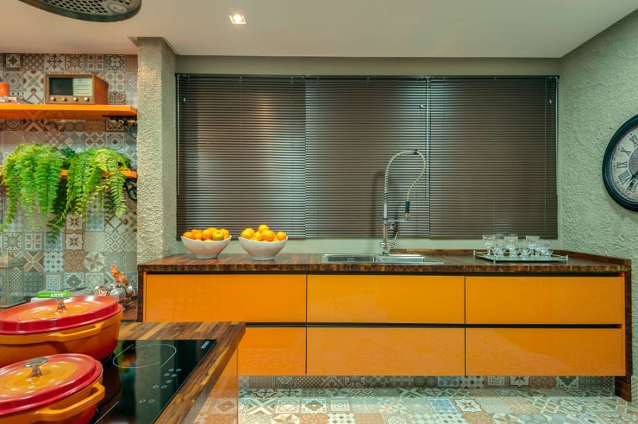 Reforma separa cozinha de estar e cria varanda gourmet com mesa de 3 m e 200 kg