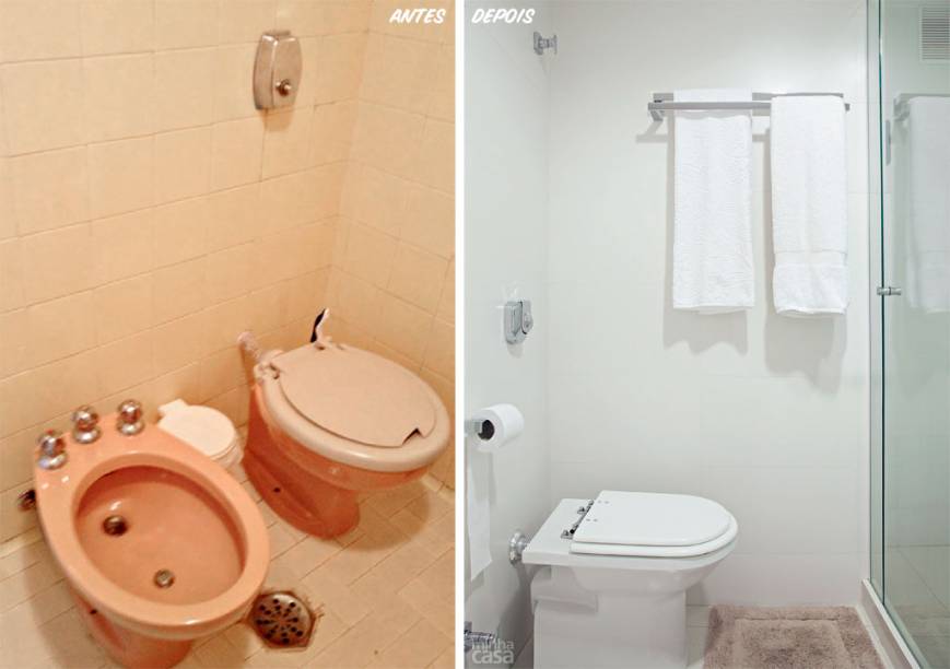 Quando a professora carioca Maria Teresa Baltar e o marido, o médico Anderson Baltar, compraram seu primeiro apartamento, o prédio era novinho, e o banheiro social exibia os acabamentos da moda: cerâmicas bege e louças ocre. Mas 40 anos se passaram e, de lá para cá, nada mudou na área de 4 m². “Nunca houve um vazamento sequer, por isso adiamos tanto a obra”, diz a moradora. Para comandar a transformação tão esperada, entraram em cena as arquitetas Joana e Julia Mallemont. E não restou azulejo para contar a história. As velhas peças deram lugar ao porcelanato branco, cor que se repete nas louças. Banheira e bidê também foram descartados e, enfim, o ambiente recuperou a juventude.