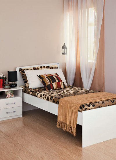 Quarto versátil. A base é a mesma: cama de solteiro e criado-mudo (ambos da Móveis Pinheiro) brancos e de traços retos. Mas a decoração muda completamente para meninas e meninos.