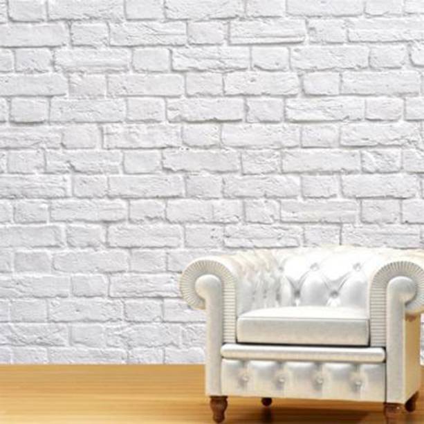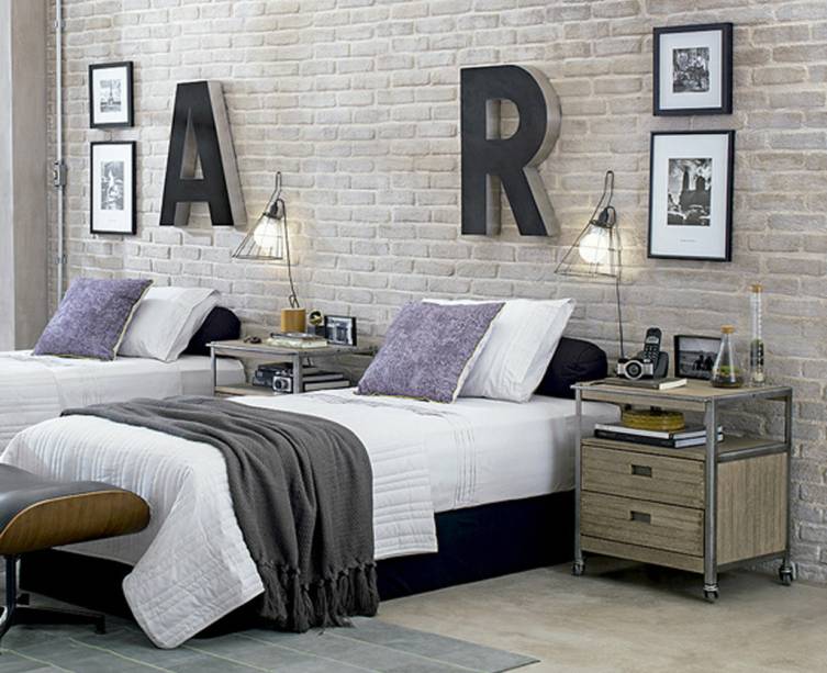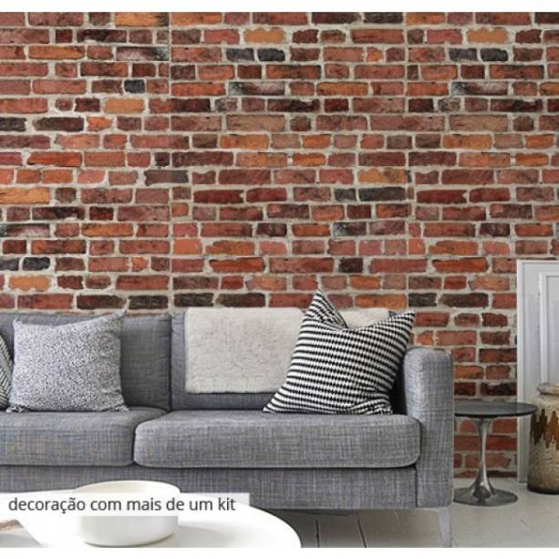 Parede ganha charme com papel que imita tijolos e quadros