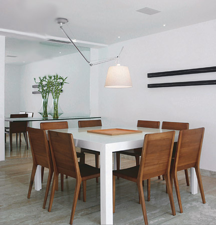O designer de interiores Marco Aurélio Viterbo recomenda atenção às proporções do ambiente na hora de eleger a mesa de jantar. Para evitar atravancos, ele sugere deixar ao menos 1 m de folga nas laterais do móvel. “Dessa maneira, cria-se um espaço de circulação e as cadeiras podem ser movimentadas com facilidade”, assegura. Como gosta de misturar estilos, ele prefere mesas neutras e de linhas contemporâneas para facilitar a composição. “Nesta sala, escolhi uma peça de glossy – uma evolução da laca – para contrastar com as cadeiras de estilo francês”, diz.