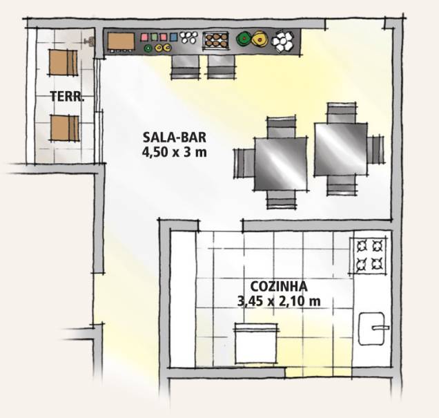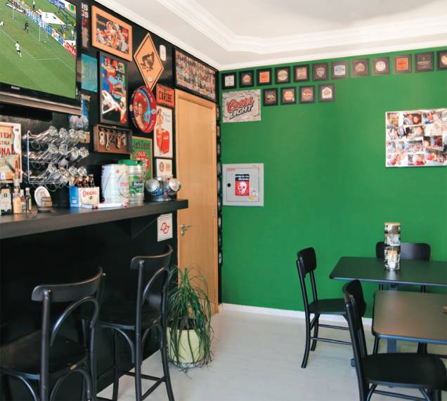 Foi necessária muita coragem para que os tecnólogos em controle ambiental Sandra Nogueira de Souza e Fabricio Queiroz Pergher transformassem o estar de seu apartamento em Rio Claro, SP, em um pub com jeitão irlandês. A ideia surgiu há três anos, em uma brincadeira do marido, que reclamava da demora de Sandra ao se arrumar para sair. “O Fabricio disse que eu me atrasava tanto que ele pensava em montar um bar em casa para que pudesse ir tomando sua cerveja”, lembra a moça. E não é que a piada vingou? O casal passou a colecionar objetos e a buscar inspiração nos botecos que frequentava. O resultado não se parece nada com uma sala convencional. “Na hora de descansar ou assistir confortavelmente a um filme, temos um quartinho que virou sala de TV”, conta a moradora.