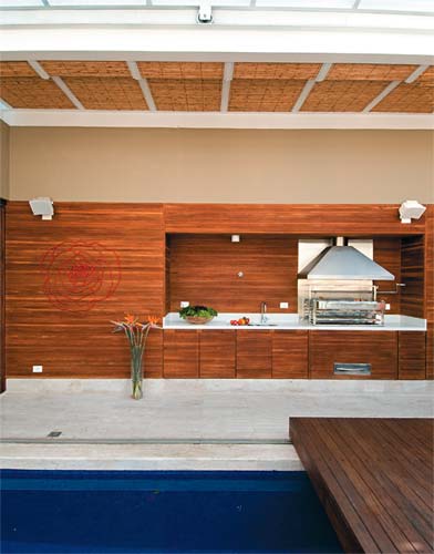 Nem a chuva nem a piscina espaçosa 100 poderiam limitar o uso desta cobertura situada no Itaim Bibi, bairro de São Paulo. Assim determinou o dono, um festeiro assumido, que há dez meses se mudou para o dúplex de 450 m² depois de uma reforma coordenada pelos arquitetos do escritório paulistano B2V. Para livrar o terraço de qualquer restrição, eles bolaram um deck que desliza sobre a piscina comporta a mesa de refeições e um teto móvel, ambos motorizados. Além disso, um painel rolô de plástico regulado manualmente confere privacidade e proteção contra as intempéries. E se você também é festeiro como o dono dessa cobertura e adora reunir os amigos para um churrasco, inspire-se em nossos 21 projetos de churrasqueiras.