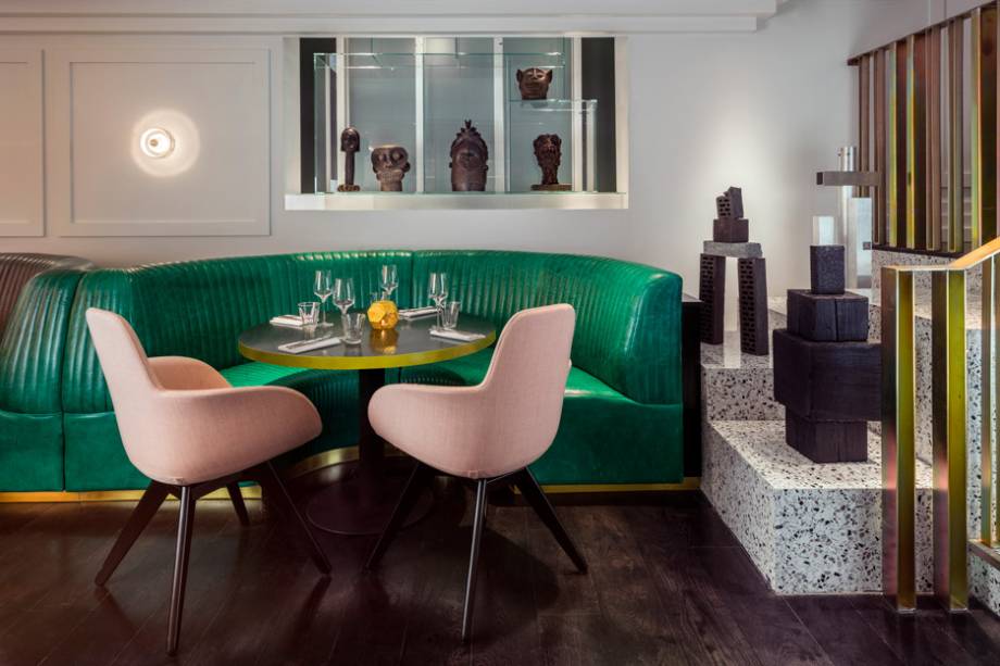O restaurante Bronte, em Londres, serve pratos da cozinha internacional. Quando chegou a hora de renovar o espaço, o designer britânico Tom Dixon e seu escritório, Design Research Studio, foram os encarregados de modernizar e de dar um novo tema aos ambientes. Com inspiração nos exploradores e colecionadores britânicos da era Vitoriana (1837-1901), diversos objetos comprados em leilões, feiras e trazidos de suas coleções particulares foram organizados por tema e expostos em prateleiras e outras superfícies. A base da decoração – preta, branca e metálica – destaca peças como o balcão e as cadeiras cor de rosa, os sofás verdes, os bares multicoloridos e os objetos em si. A luz natural, abundante, completa a atmosfera do restaurante, que também conta com algumas peças assinadas pelo designer. Confira mais imagens na galeria abaixo: