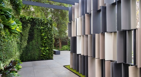17/17 Painéis que hipnotizam: no jardim elaborado pelo arquiteto e paisagista Alex Hanazaki, a estrutura metálica sustenta lâminas de porcelanato com tecnologia autolimpante e propriedades que purificam o ar (Eliane Revestimentos). A instalação grandiosa direciona o passeio pelo espaço de mais de 450 m². (Foto: Paulo Santos)
