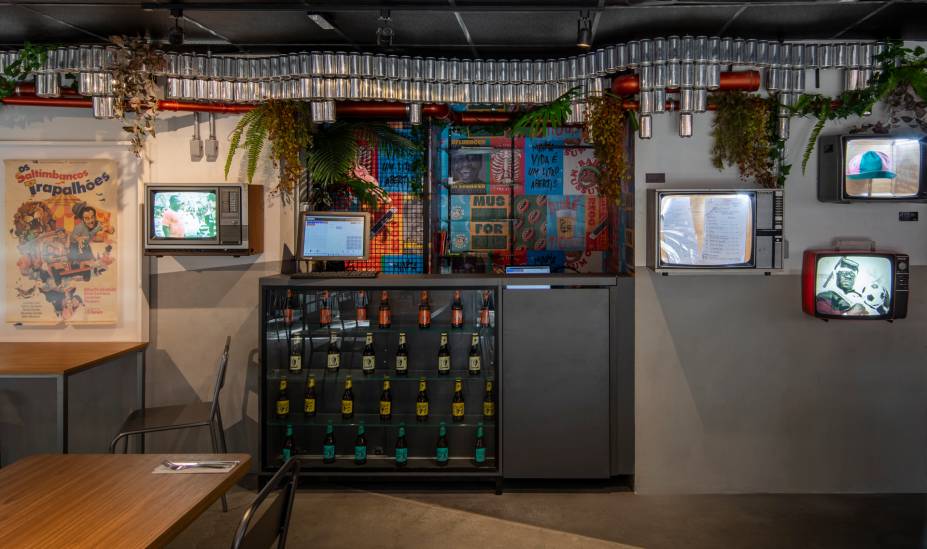 Outras memórias dispostas pelo salão tornam o bar uma espécie de museu do Mussum. Sua família cedeu material original do passado, enquanto aparelhos antigos de TV passam trechos de episódios e filmes dos Trapalhões e de apresentações dos Originais do Samba, grupo de samba tradicional que Mussum integrou como Carlinhos da Mangueira. Pontos “instagramáveis” completam a ambientação, como as ovelhas aplicadas de perfil nos espelhos. O reflexo duplica a imagem e completa o corpo do animal, que diz em neon: “mé!”.