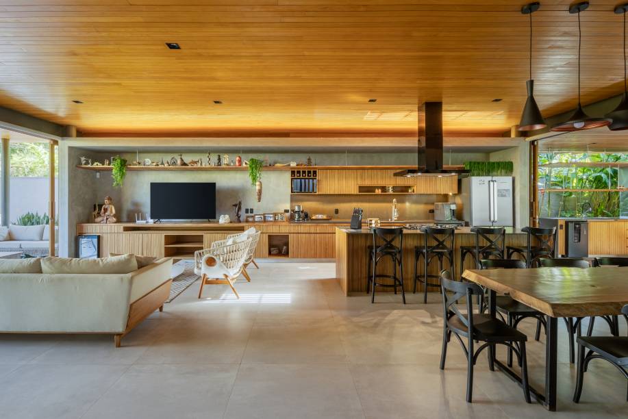 “A cozinha foi projetada como o coração da casa, conectando os moradores com o jardim e a área externa. Queríamos que ela fosse um espaço convidativo e funcional, perfeito para momentos de confraternização”, explica Rodrigo Alves Pereira.