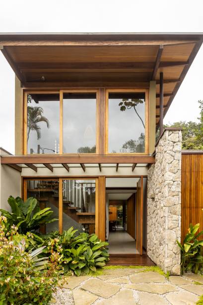 O projeto se destaca pela escolha de materiais naturais como madeira, pedra e grandes painéis de vidro, criando uma integração perfeita entre os ambientes internos e externos. “A proposta foi criar um espaço que trouxesse o máximo de tranquilidade, harmonia e contato com a natureza, oferecendo aos moradores uma casa para momentos de lazer, mas com conforto e sofisticação”, explica o arquiteto responsável pelo projeto.