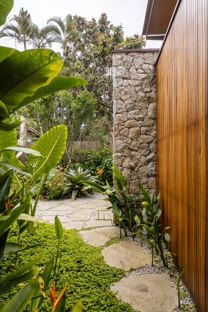Grandes beirais foram incorporados para garantir conforto térmico, enquanto a área externa conta com varanda, deck e sauna, criando o ambiente perfeito para relaxamento. Além disso, o jardim é um elo de ligação com a extensa área verde preservada que leva até o rio, oferecendo aos moradores a oportunidade de remar até a praia.