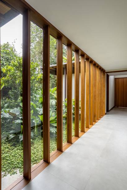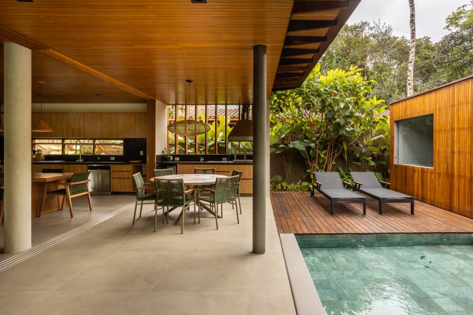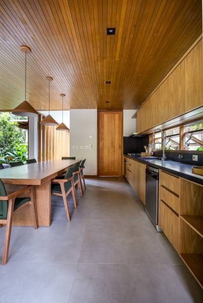 “A proposta do projeto foi criar espaços fluidos, onde as áreas se conectam de forma orgânica, e ao mesmo tempo garantir que a casa tivesse a privacidade necessária, sem perder a conexão com o verde e o entorno”, afirma o arquiteto.