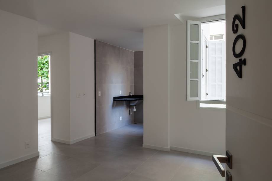 Em relação aos interiores, ao atravessar a porta, revelam-se o uso de diversos elementos importantes do projeto original, como luminárias, painéis, portas, entre outros, porém ressignificados assumindo novos usos e funções dentro do espaço. “Desta feita, podemos apropriar da memória como suporte para as necessidades do mundo contemporâneo”, prossegue Fernando.