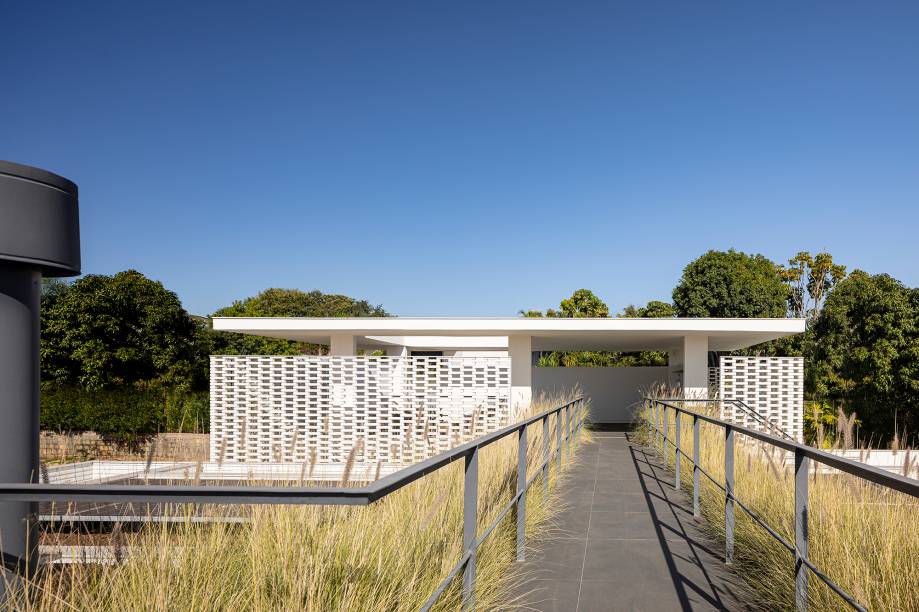 Os tijolos espaçados reinterpretam um dos mais relevantes objetos arquitetônicos de Brasília, o cobogó, tão importante para a ventilação e iluminação natural na arquitetura brasileira.