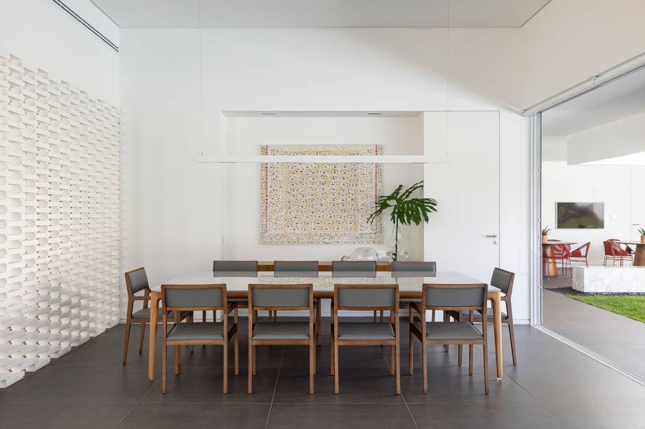 Com assinatura do escritório Bloco Arquitetos, o projeto também conta com um layout onde todos os ambientes internos se voltam para o jardim