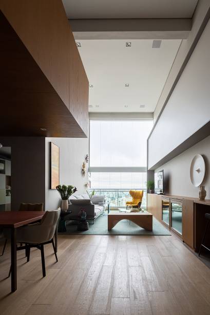 4 caixas cromáticas criam funções em apê com pé-direito duplo