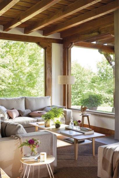 - Materiais naturais se misturam nesta casa de campo espaçosa