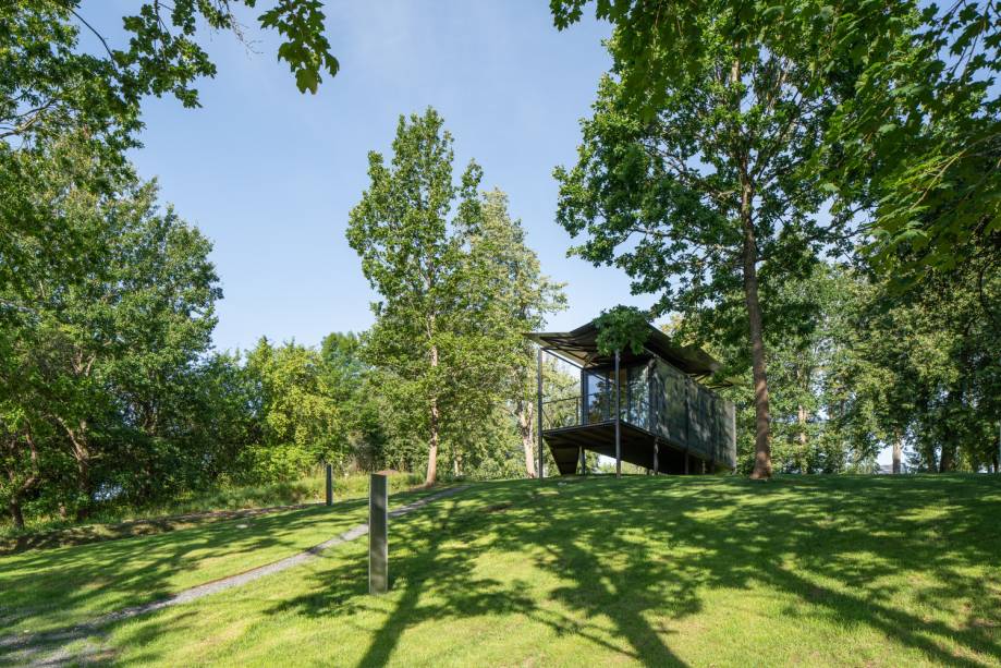 Localizada na Ilha das Maçãs, a primeira cabana é cercada por uma topografia característica com exuberante vegetação nativa. O local revelou as vantagens da arquitetura da estrutura: nenhuma operação de construção local foi necessária e o volume visualmente leve fundiu-se harmoniosamente com a paisagem natural.