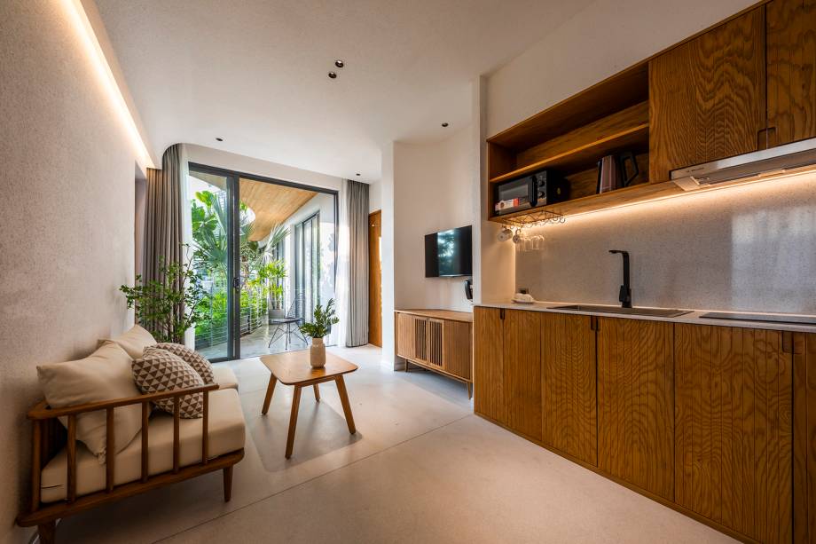 O estúdio K.A Studio desenvolveu os apartamentos com a ideia de criar um oásis tropical em meio à paisagem urbana densa e lotada da cidade de Ho Chi Minh. Ao invés de expandir a área construída da construção anterior, o estúdio de arquitetura local decidiu manter o grande vazio do local, respeitando a maioria das plantas existentes e criando espaço para mais.