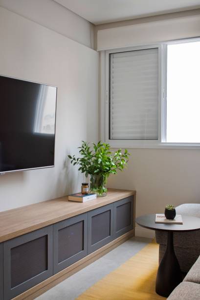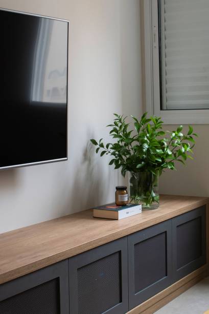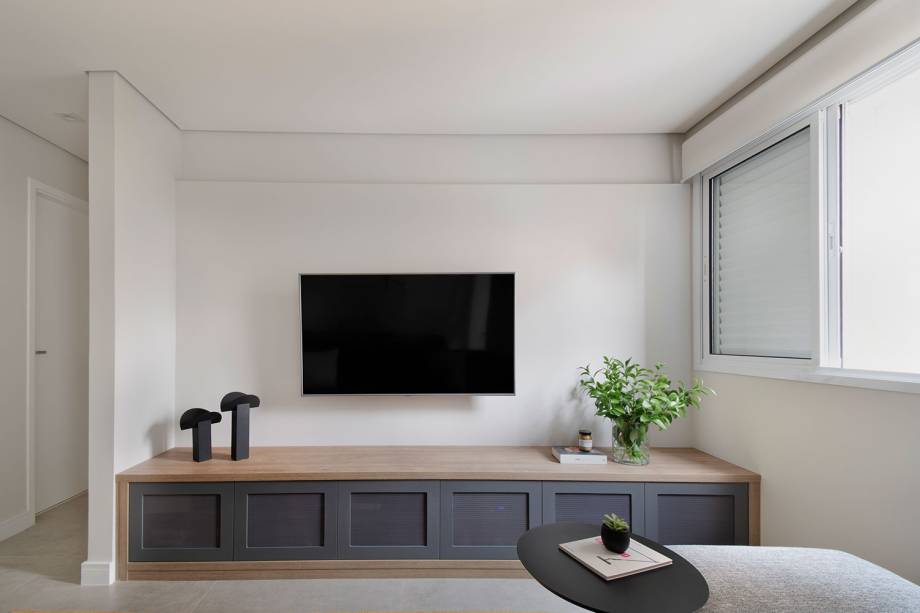 “O principal desafio era criar um espaço minimalista, mas com ar de aconchegante e de atual para o espaço, sem muitos objetos de decoração e com toques pontuais de cores e texturas”, explicam os profissionais.