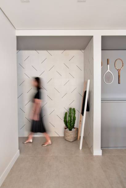 “Gostamos muito do aspecto minimalista do projeto retratando a personalidade dos clientes. Em especial, o que mais gostamos é o corredor de entrada com os ladrilhos hidráulicos nas paredes”, finalizam os profissionais.