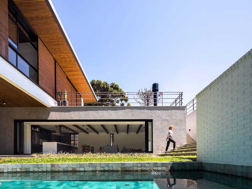 A Casa AC, localizada em um condomínio fechado de Curitiba (PR), foi assinada pelo escritório Nommo Arquitetura e é dividida em três blocos, agrupando por uso e necessidade de privacidade. O projeto de 392 m² para um jovem casal, busca criar uma conexão com a natureza.