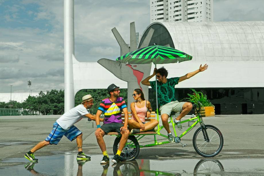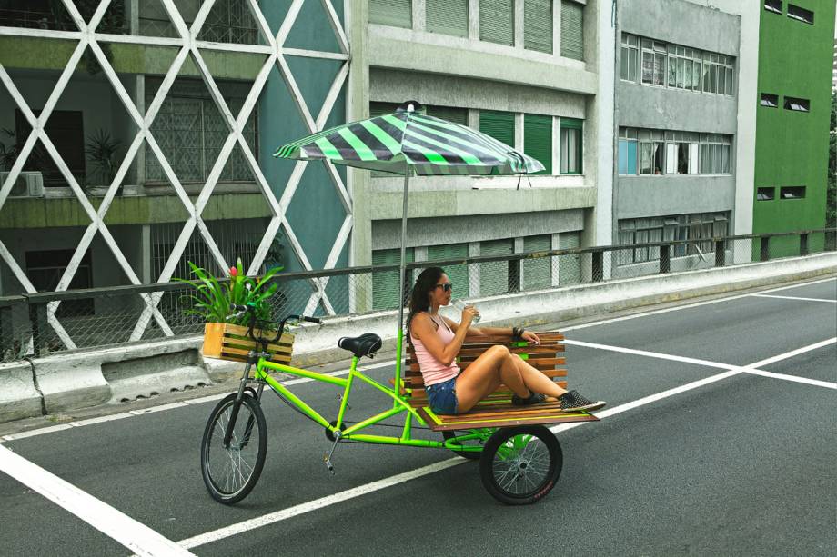 Até o dia 9 de maio, paulistanos e turistas podem visitar a exposição “Praças (Im)possíveis” do coletivo Bijari na galeria Choque Cultural. O projeto é uma reflexão da carência de espaços públicos de descanso, como parques e praças. A obra cria novas formas de convivência na cidade, convertendo temporariamente vazios urbanos em uma praça. “Pensamos nas formas como a arte pode se configurar como elemento transformador do espaço público. Nosso olhar se dirige às fendas através das quais podemos construir uma nova cidade”, explicam os artistas do coletivo Bijari. Segundo o curador da exposição, Baixo Ribeiro, a ideia é que qualquer pequeno espaço da cidade possa ter um banco, vegetação e uma sombra. “Com um guarda chuva/sol, bancos escamoteáveis e floreiras, a escultura-bike se transforma numa micro-praça-pública. E quando algumas dessas praças modulares se encontram, é possível formar espaços de convivência muito confortáveis e provocativos”, conclui.