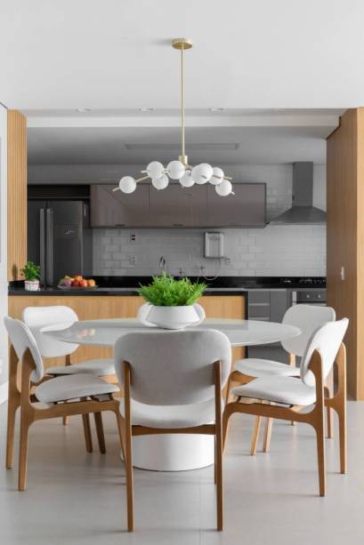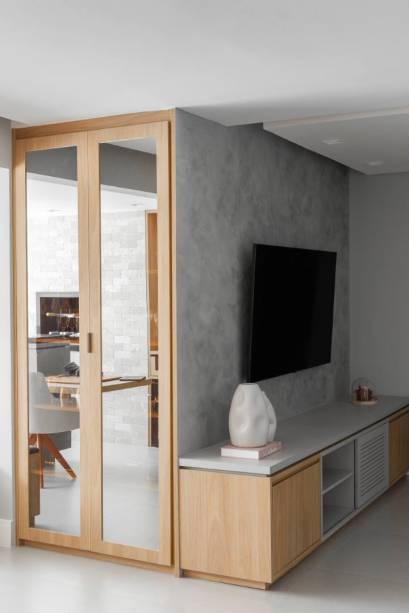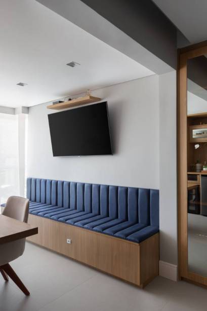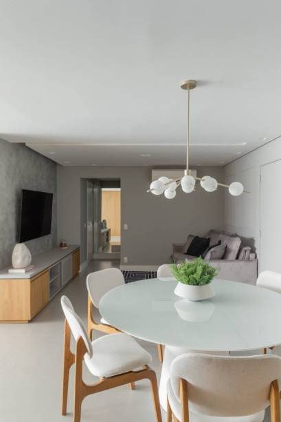 Unir a varanda com a sala e a cozinha foi o primeiro passo neste apartamento de 115 m² projetado pelo escritório Loft7 Arquitetura, comandado pela arquiteta Rafaella Grasnoff. “Os clientes queriam uma boa área social para receber amigos, por isso optamos pela integração”, conta.