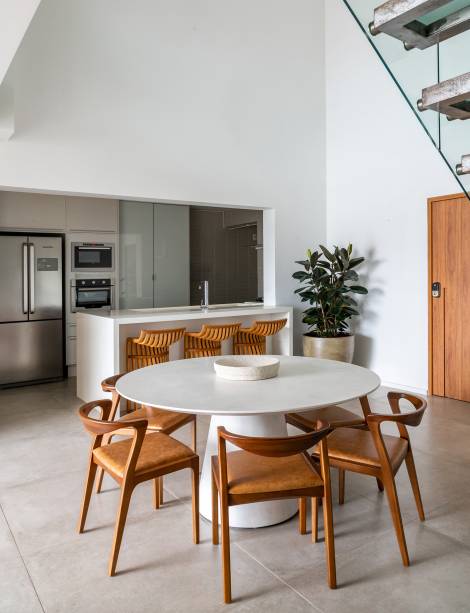 “Escolhemos uma linha de decoração minimalista com poucos móveis, porém assertivos e práticos. Uma alteração primordial foi a alteração do layout da mesa de jantar para um móvel redondo, o que melhorou a circulação do ambiente”, conta a profissional.