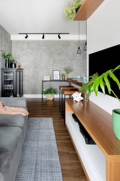 “Literalmente o pedido da cozinha verde foi o ponto de partida para todo o resto. Usando o Pinterest como grande referência chegamos a conclusão também que, pelo perfil descolado, o cimento queimado e a madeira seriam a combinação perfeita!”, conta a profissional.