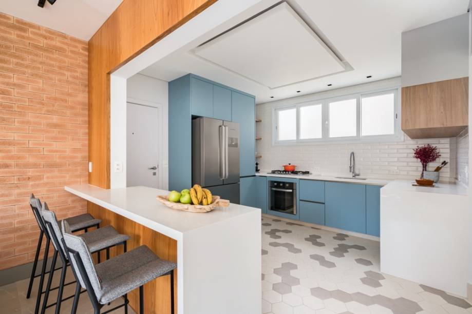 Com 130 m², este apartamento antigo passou por uma reforma completa, comandada pelo escritório In Loco, para se tornar o lar de dois jovens que estavam iniciando a vida como um casal. “O imóvel era da mãe da cliente e eles queriam reformar inteiro, pois era bem antigo e com design ultrapassado, além da necessidade de retrofit e toda a parte de hidráulica e elétrica”, explica Jessica Gayoso, sócia de Yago Marino Costa.