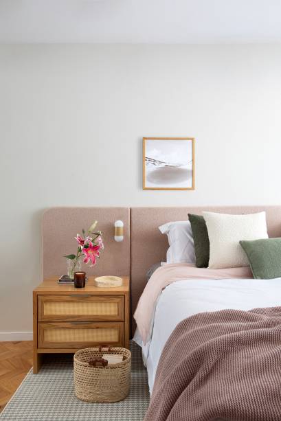 “Quando entramos no apartamento pela primeira vez, adoramos o pé-direito alto e o piso de taco e percebemos logo todo o potencial do imóvel, apesar da planta ruim, com uma sala enorme, uma cozinha pequena, uma única suíte e um banheiro social gigante, bem típico dos imóveis dos anos 1960”, destaca Tânia.