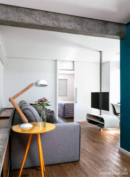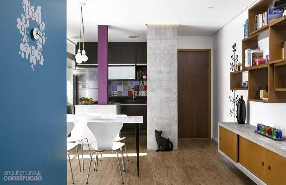 Cozinhar, receber os amigos, assistir TV, trabalhar: tudo acontece na área social do apartamento, que ganhou mais conforto e luminosidade com a integração de um dos dois quartos, no centro da planta.