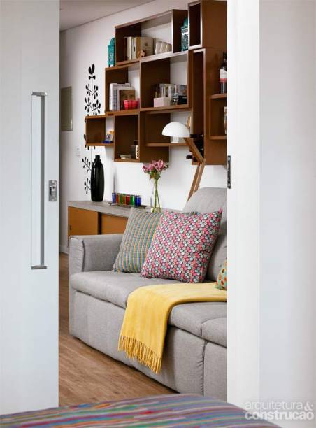 Uma bolsa compacta e com divisórias para cada acessório é a primeira imagem evocada por Liana Minsoni ao falar de seu apartamento. “Dizem que, quanto maior a bolsa, mais coisas você coloca e mais dificuldade tem para encontrá-las lá dentro. Com uma casa, acontece a mesma coisa”, compara a produtora de eventos. Para ela, essa ideia mostra como o conforto é um sonho possível num espaço reduzido – desde que ele seja milimetricamente projetado. Foi o que ela e o marido, Hélio Padrão, desenvolvedor de softwares, pediram à arquiteta Juliana Fiorini, de São Paulo. A profissional chegou à minúcia de contar os pares de sapatos do casal – e ainda avaliou tudo o que os dois queriam guardar para calcular com exatidão os armários. No entanto, muitas decisões foram tomadas antes da etapa da marcenaria. Todas com o intuito de otimizar a circulação e trazer mais luminosidade e amplitude visual. Primeira ação? Criar uma ilha central com fogão. “Adoro cozinhar e sonhava preparar as refeições de frente para a mesa de jantar”, diz Liana. Para isso, a antiga entrada de serviço foi fechada e a parede principal da cozinha, derrubada. No restante da planta, o maior problema era a sala superestreita, que mal comportava um sofá. “Ela também não tinha janela e o fluxo era atravancado por quatro portas”, lembra Juliana. Daí a ideia de incorporar o segundo dormitório. “Topei. Mas pedi um lugar onde pudéssemos receber hóspedes”, conta a moradora. Ótimo, era justamente a junção dos dois ambientes que permitiria isso: área para um bom sofá-cama. E para muito mais. Com a integração e menos portas pelo caminho, o estar ganhou a luz vinda da janela do antigo quarto, além de uma TV, um escritório e um guarda-roupa. Conseguiu até ceder 45 cm de sua largura para a suíte. Voltando à comparação: trata-se de uma bolsa compacta, bem dividida… e desenhada com exclusividade.