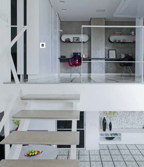 Poucos apartamentos e moradores jovens. O perfil deste empreendimento, na zona sul paulistana, era exatamente o que o diretor comercial Edson Oliveira e o booker de uma agência de modelos Nelson Quionha procuravam. Quando eles conheceram o modelo decorado, o edifício já estava subindo, mas ainda deu tempo de negociar com a construtora as mudanças na planta (clique na foto ao lado para conhecer as vantagens e as desvantagens dessa customização). Seguindo o projeto das arquitetas Luciana Helfenstein e Paula Zemel, o dúplex de 165 m² foi entregue sem acabamento e com paredes a menos o que agilizou a conclusão da reforma de cinco meses e também trouxe economia, pois não foi preciso quebrar nada para trocar os revestimentos. Visite o apartamento neste vídeo, em que a arquiteta Luciana Helfenstein mostra os detalhes do projeto.