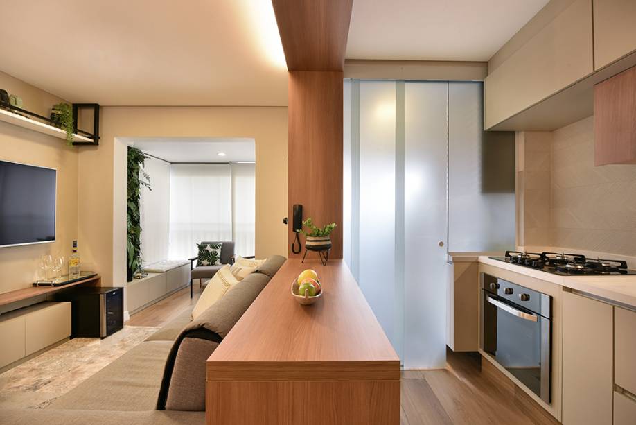 Kitnet de 33 m² ganha área de serviço e cozinha integrada à sala após reforma