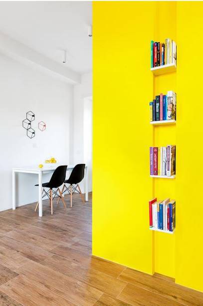 Apartamento pequeno de 48 m² é decorado com tons de amarelo em Roma
