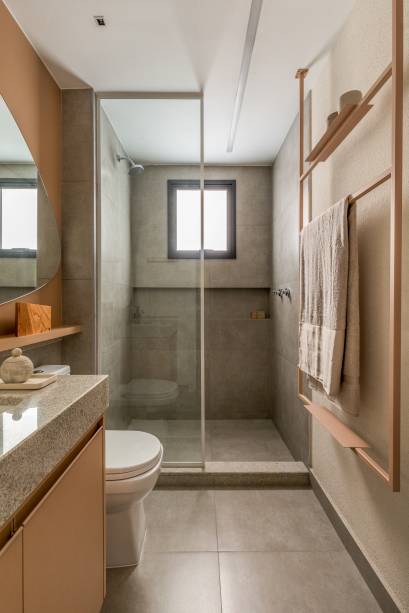 Assinado pelo escritório Bohrer Arquitetos, o projeto apostou em uma paleta de tons neutros — como bege e off-white — para criar uma atmosfera calma e sofisticada. Esses tons servem de base para a inserção pontual de cores mais vibrantes, como o vermelho intenso presente na cozinha e no lavabo. O contraste cria pontos focais interessantes sem comprometer a sobriedade do conjunto.