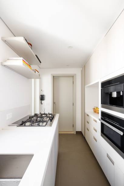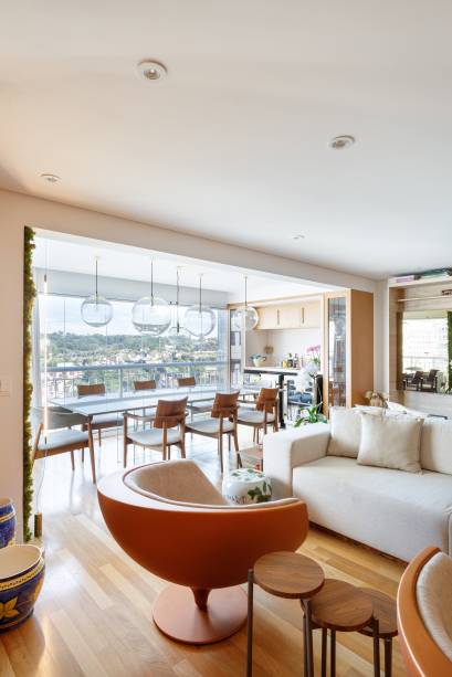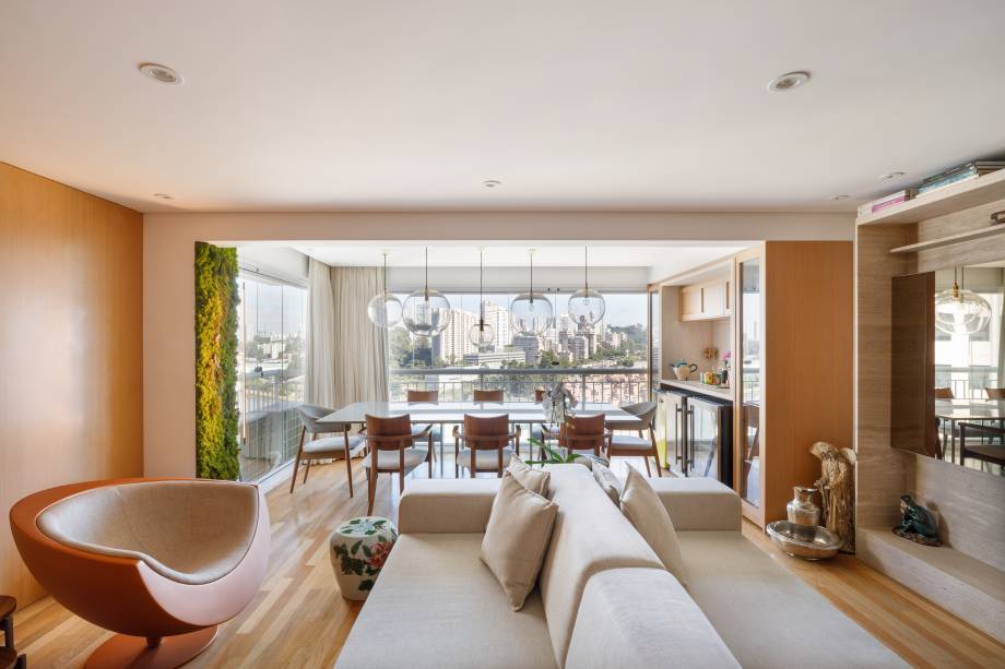 O resultado final é um apartamento funcional, e com soluções interessantes de layout, como a integração da varanda com a sala de estar e a criação de um escritório/quarto, que também tem conexão com a área comum.